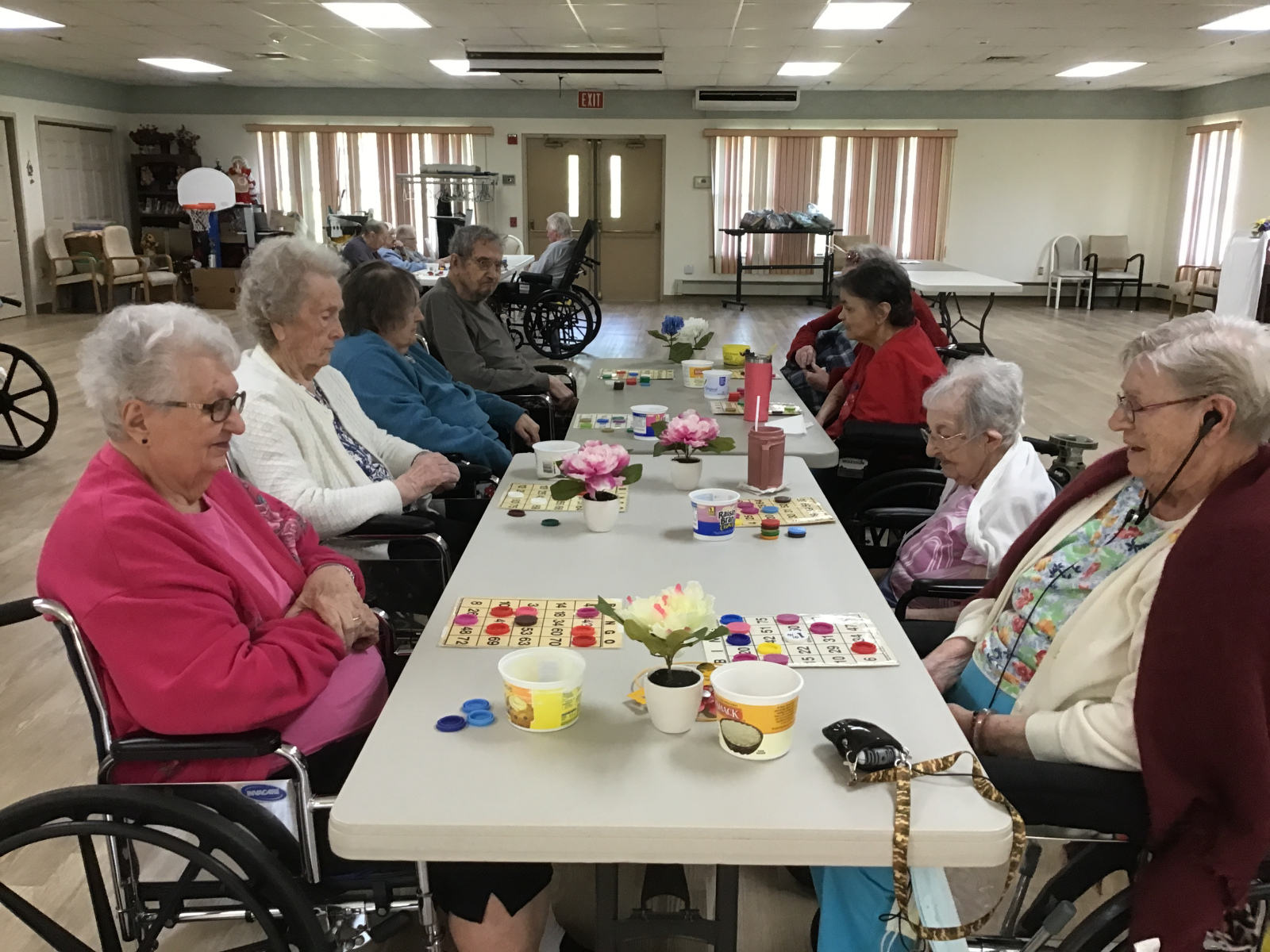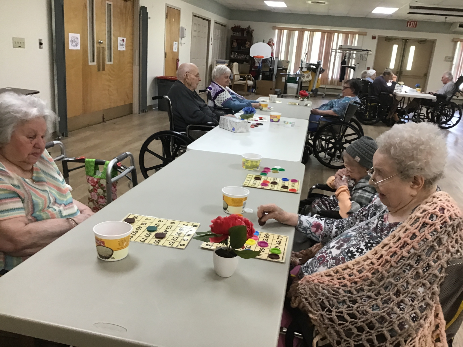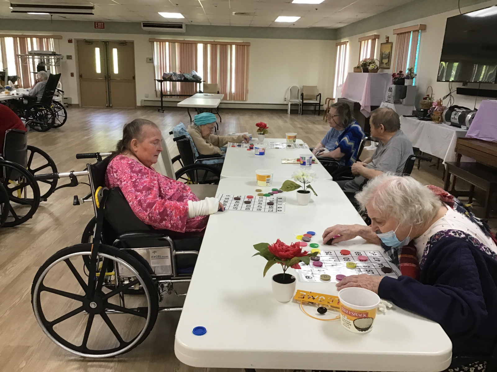 Many residents enjoy playing Bingo which is offered weekly for 1 hour. During National Nursing Home Week on May 15th, our residents had a double treat, as they were offered a 2 hour Bingo Marathon which put smiles on many of our residents faces. The residents enjoyed playing the Bingo games and winning prizes.