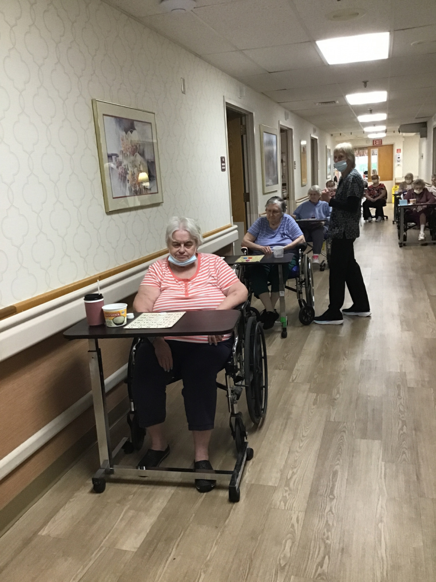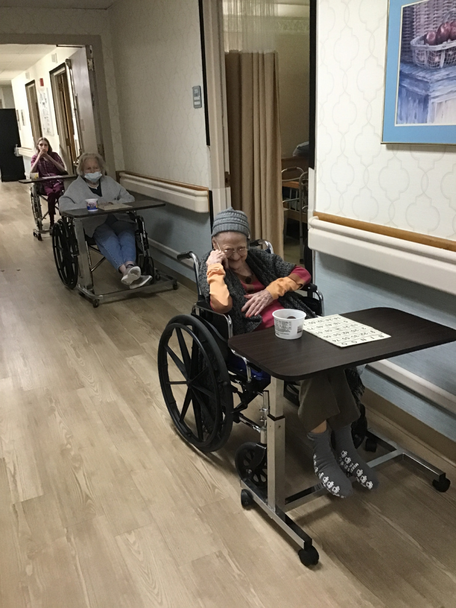 This week looked a bit different from our usual bingo game setup, but we still had a blast. Whether it be in the grand room or out in the hallway, our residents love shouting “Bingo!” whenever and wherever they can.