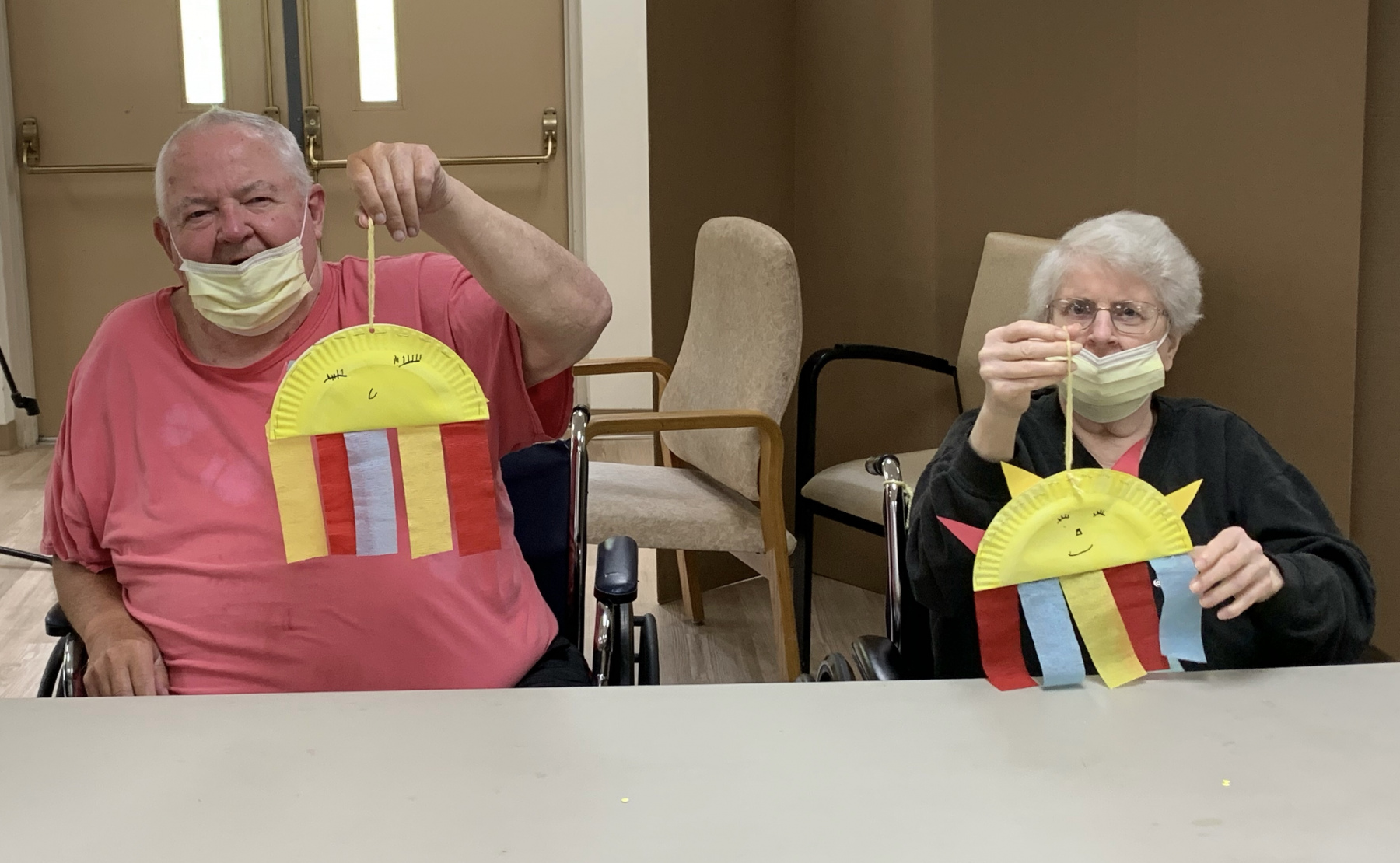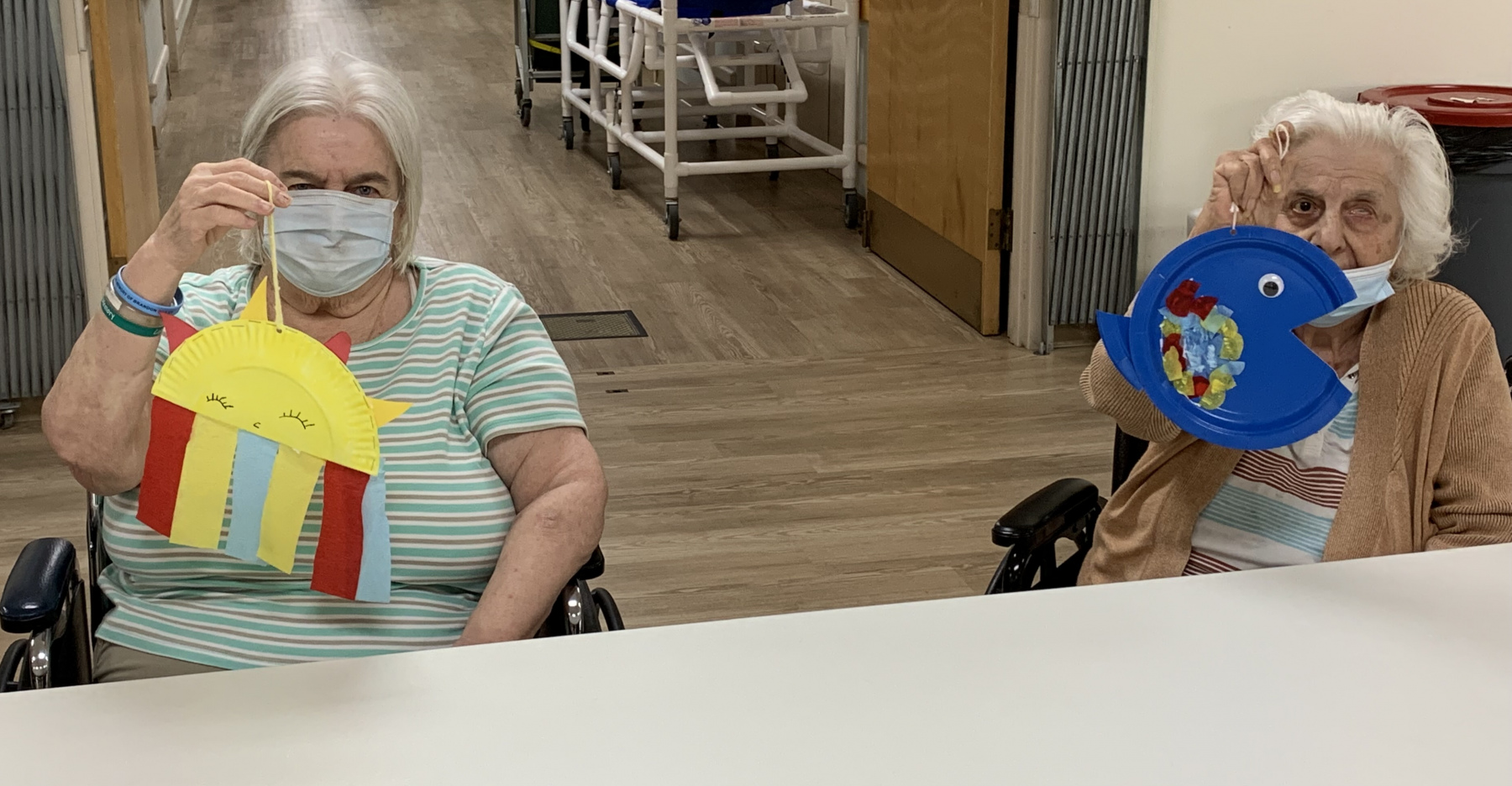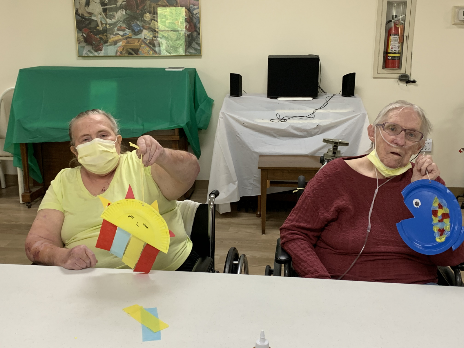Residents enjoyed some Arts and Crafts…What better thing to make in the hot summer sun but a sun or a fish. They had the choice of what they wanted to make. Activity staff prepped the supplies so residents could put the finishing touches onto their craft. They were very proud of their creations. Enjoy the pictures.