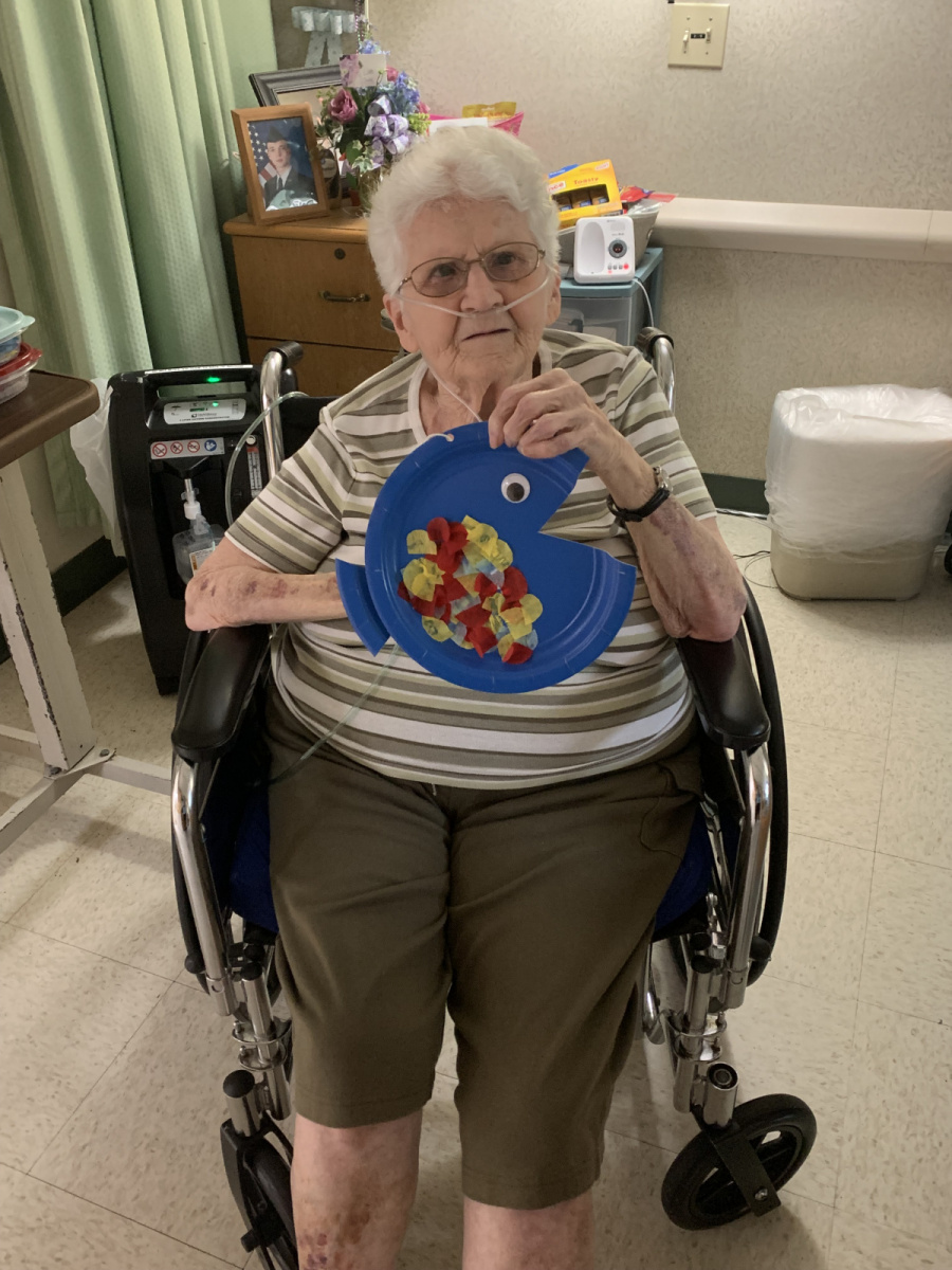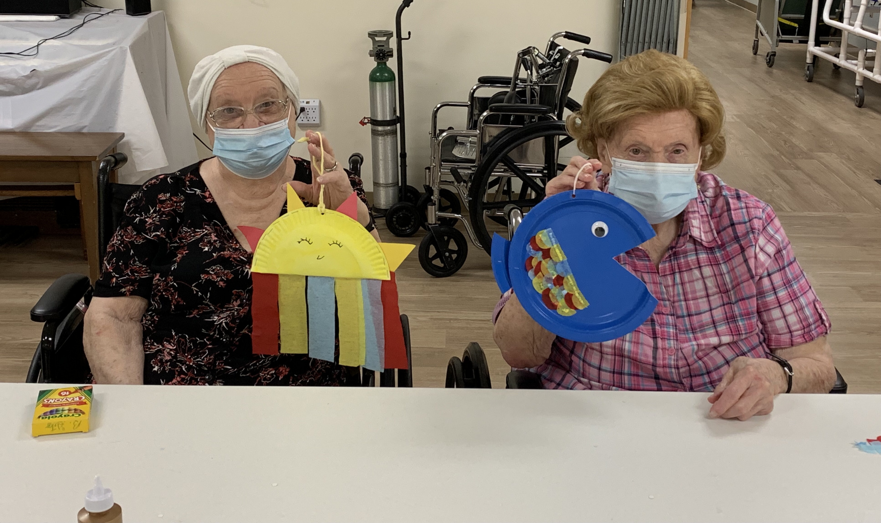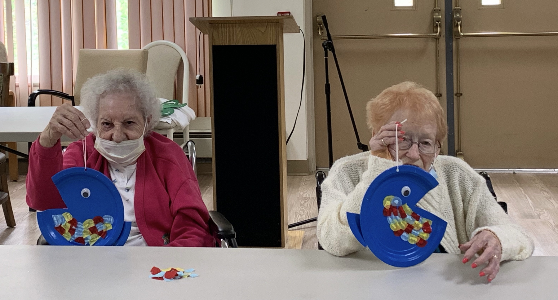 Residents enjoyed some Arts and Crafts…What better thing to make in the hot summer sun but a sun or a fish. They had the choice of what they wanted to make. Activity staff prepped the supplies so residents could put the finishing touches onto their craft. They were very proud of their creations. Enjoy the pictures.