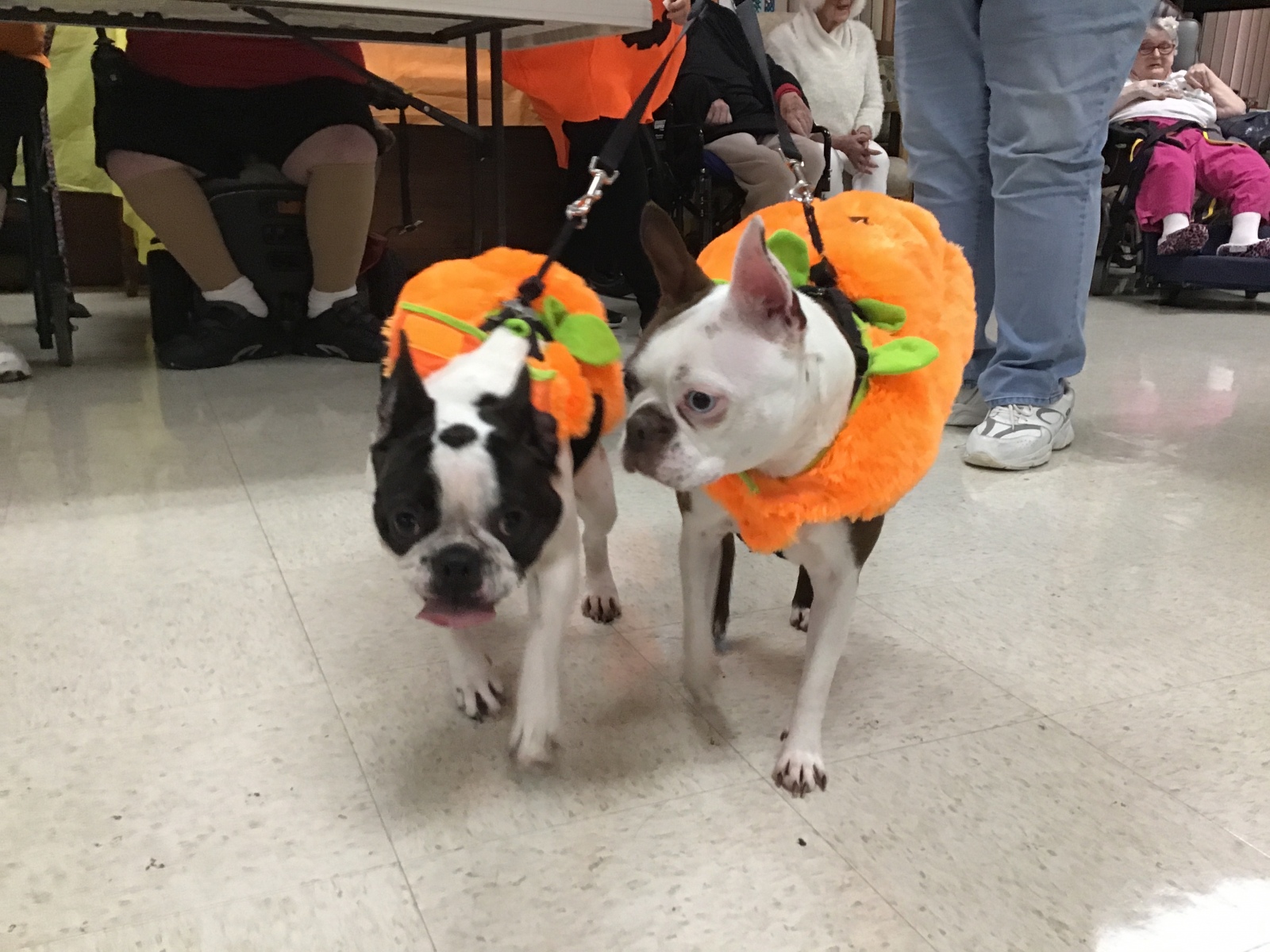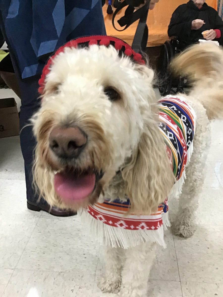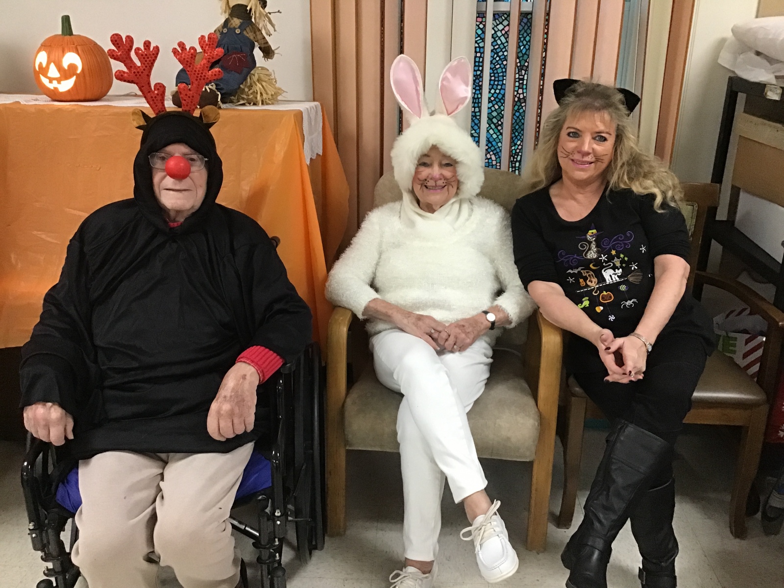 The Residents of Mahoning Valley Nursing and Rehabilitation Center were brought to the Emerald Grande Room to watch the parade of costumes walk past. Everyone young and old like to participate in our Halloween Celebration. 2 legs and 4 legs get all excited to dress up for our residents. Once inside the Grande room, our judges pick winners out of 5 categories. This years judges were Nancy S. from Activities and B. Hahn – Resident Council president.