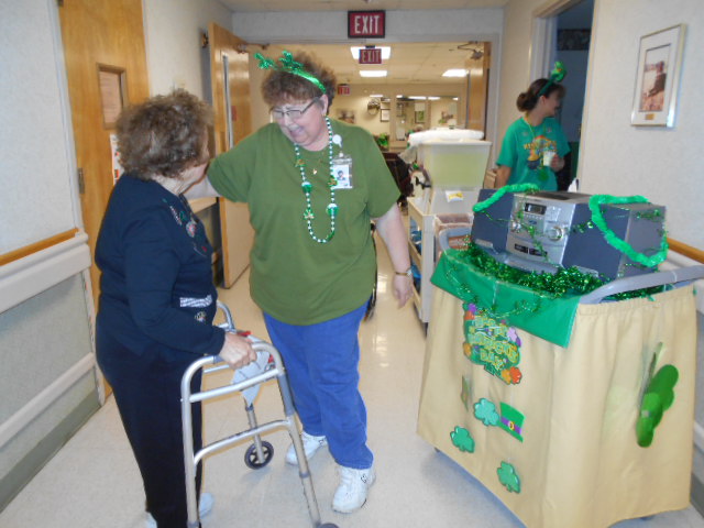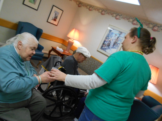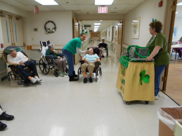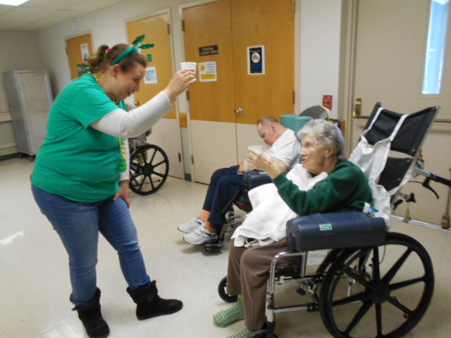 Mahoning Valley Nursing and Rehabilitation Center’s activity staff had a little St. Patrick’s Day fun with residents by dressing up in some green to show our inner “Irish” and having some snacks and fun. Amy S. from dietary was kind enough to make up something a little special so she brought her special “Green” drink to share with anyone who wanted some refreshment.