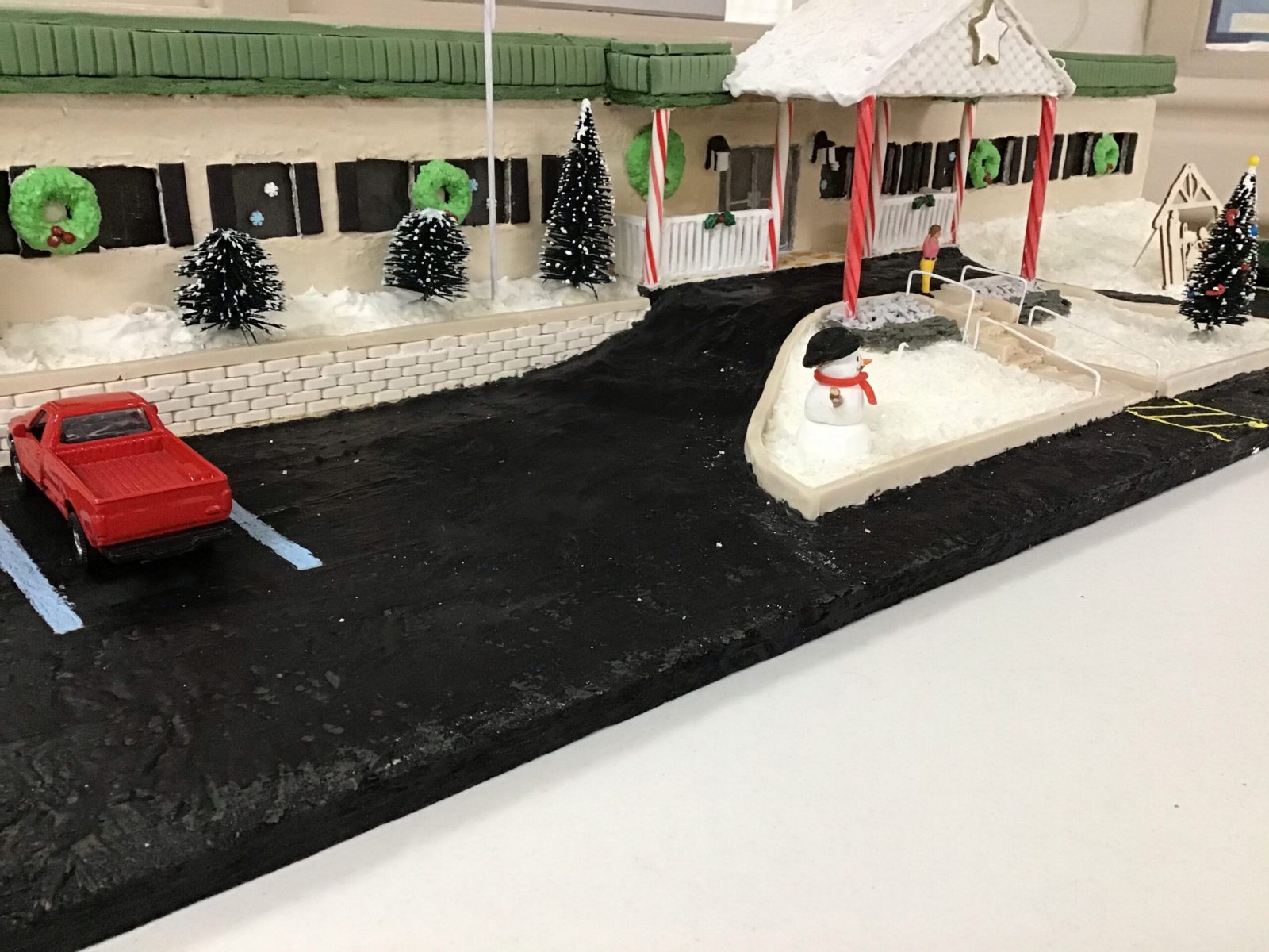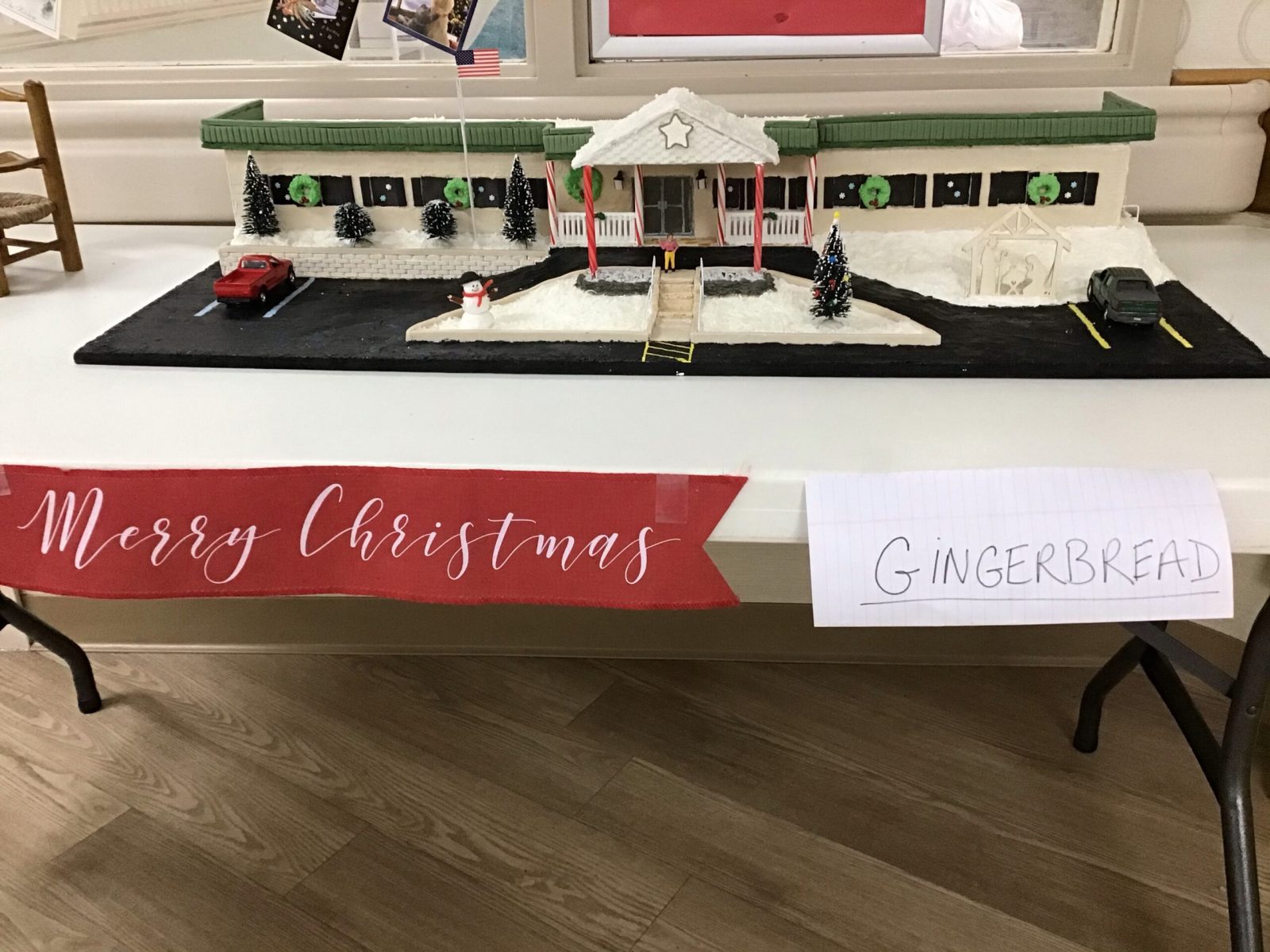 Staff Karen Klotz has been making a Gingerbread House now for many years to share with the residents and staff.  This year she thought it would be great to make a replica of our facility.  It took her many weeks to finish this project.  For a complete story scroll back on our Facebook page to see more pictures and read her story here.