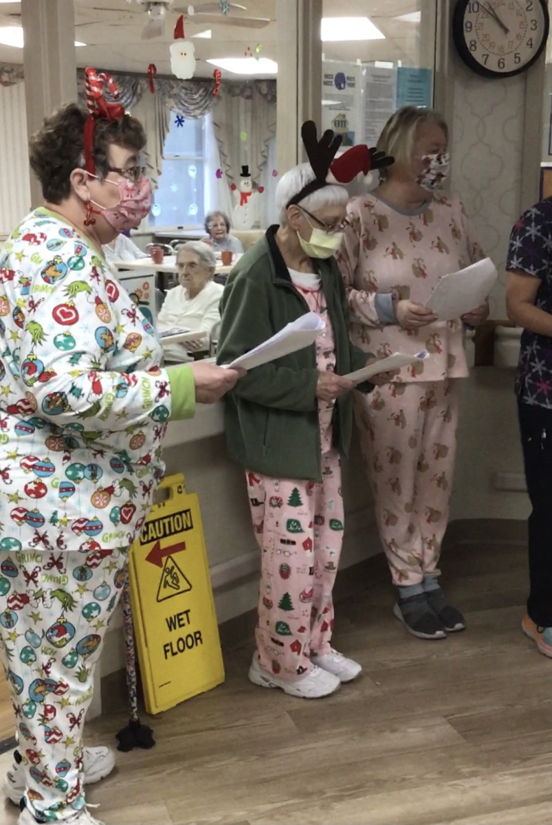 We are in full swing of Christmas here at Mahoning Valley. Activity staff decked the halls which involve putting a wreath on each room’s door and throughout the hallways. Decorating each Dining Room with a small tree and getting the Nurses’ Desk all decked out. Our big Christmas Tree in the Grande Room was decorated by Activity staff, while Glenn Miller, THE ONE MAN BAND, came to entertain our residents.