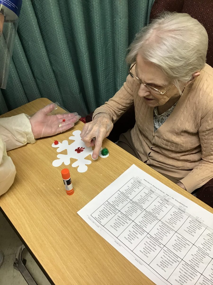 Here are some video clips and pictures of residents who participated in a Christmas Craft.  They enjoyed making Christmas Trees and/or snowflakes. It was a fun time as well as good therapy for their fingers.