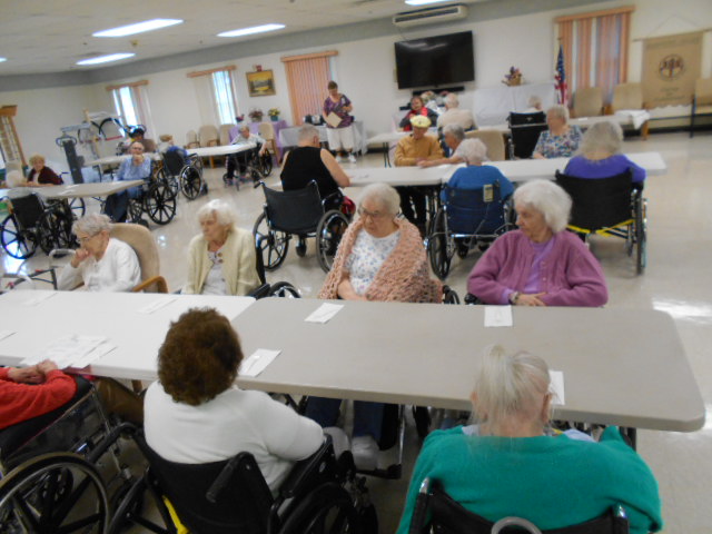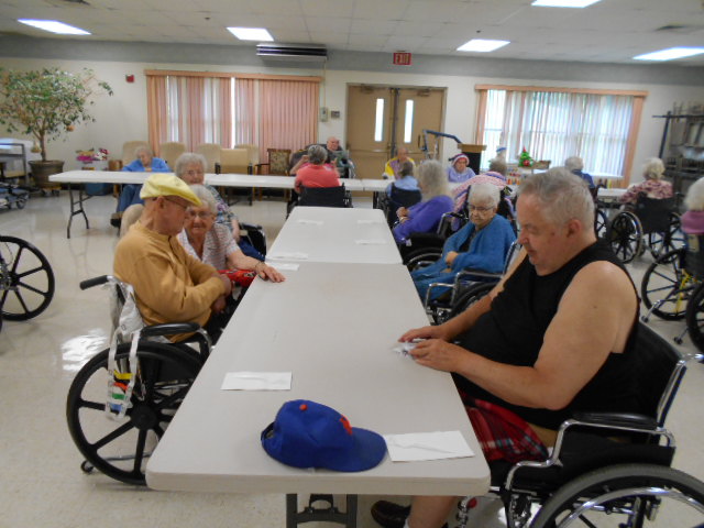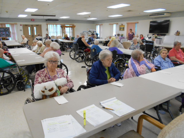 Snickers is one of our therapy dogs that started coming to visit when he was a “Puppy”. He came to visit last week while we had the residents on the porch enjoying popsicles. And of course, he had to have some too. Snickers also can do a lot of tricks with the help of his Mommy. Visit again soon Snickers.