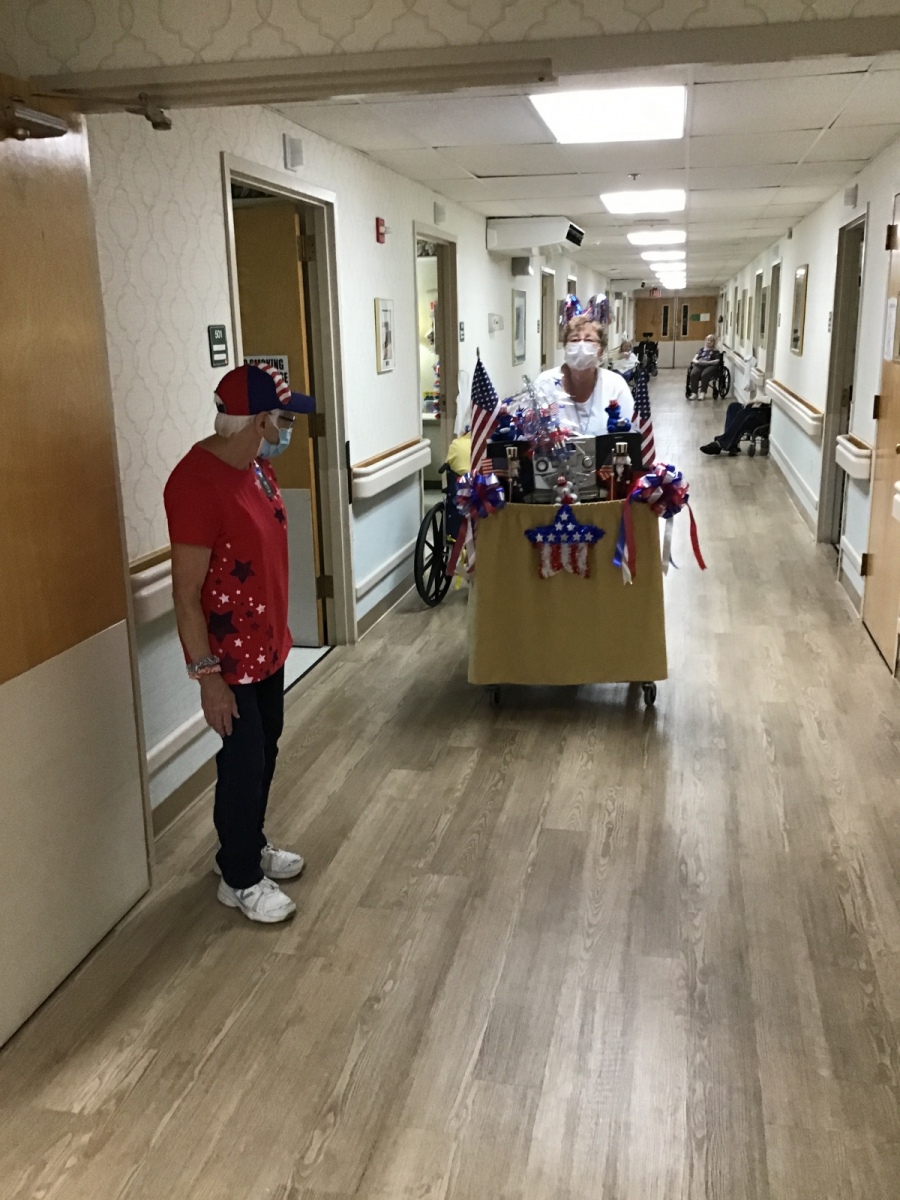 We had a great time at our July 4th Parade! It was wonderful having Snickers and his mom Connie stop in as well, seeing the ever festive Nick. The residents enjoyed the parade and we look forward to the next time.