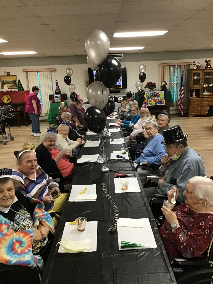 It might have only been 2 pm, but we partied like it was midnight. The Activity staff held their annual New Year’s Eve Party on New Year’s Eve day. Our wonderful dietary department made yummy parfaits and gave all a glass of sparkling cider to toast with.