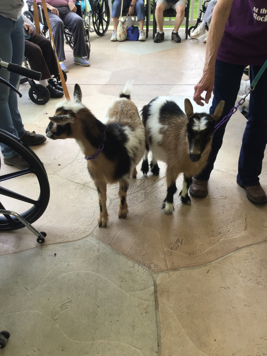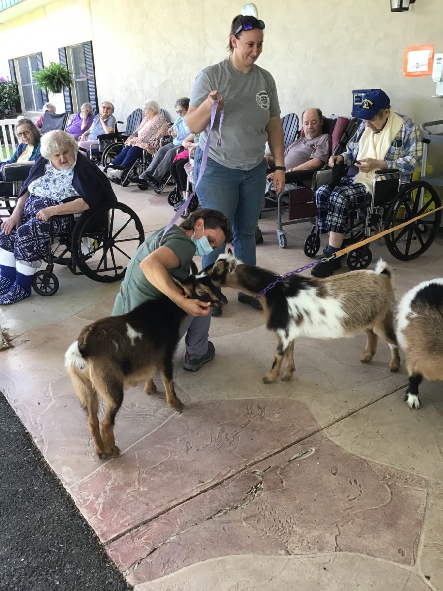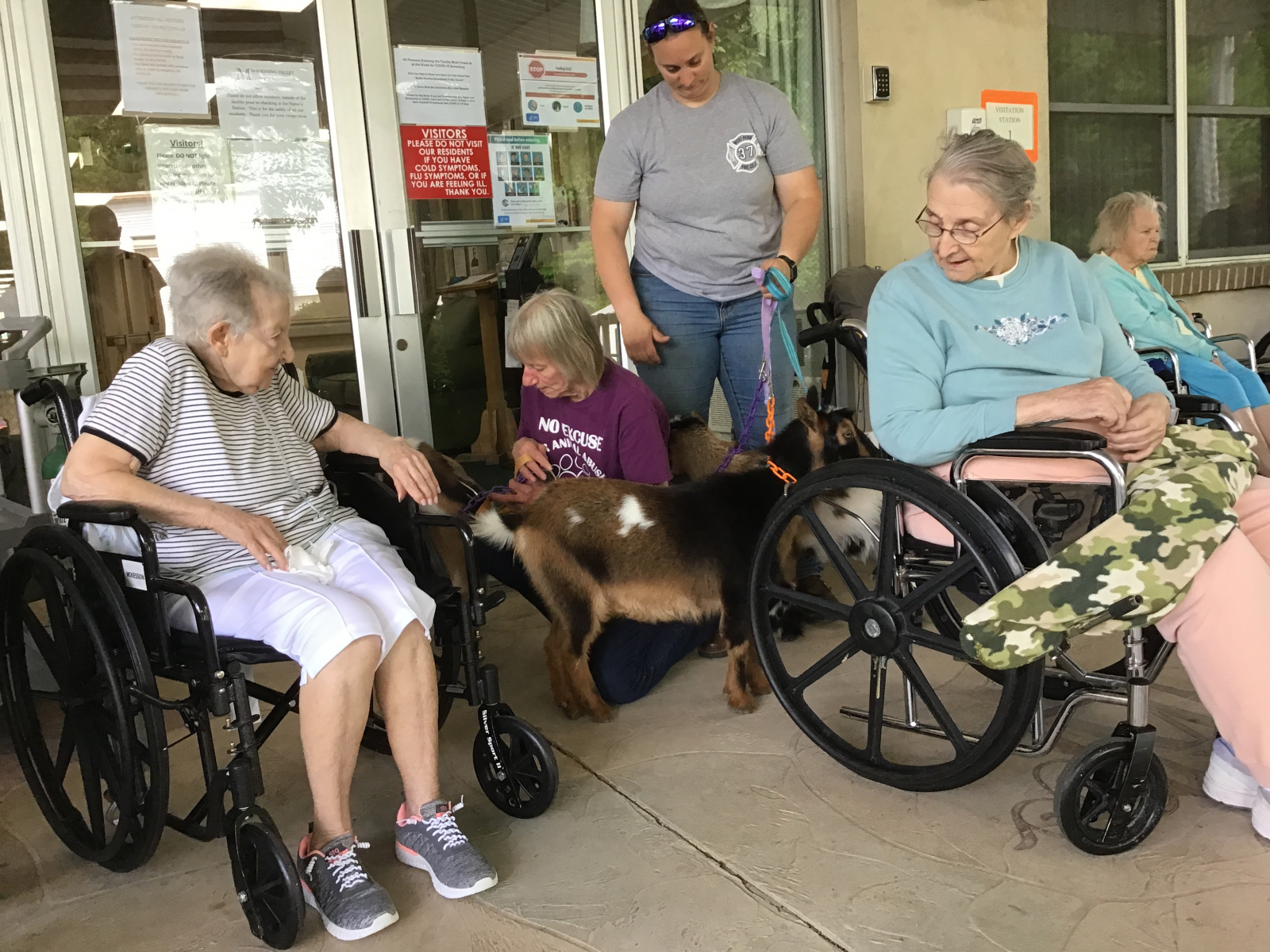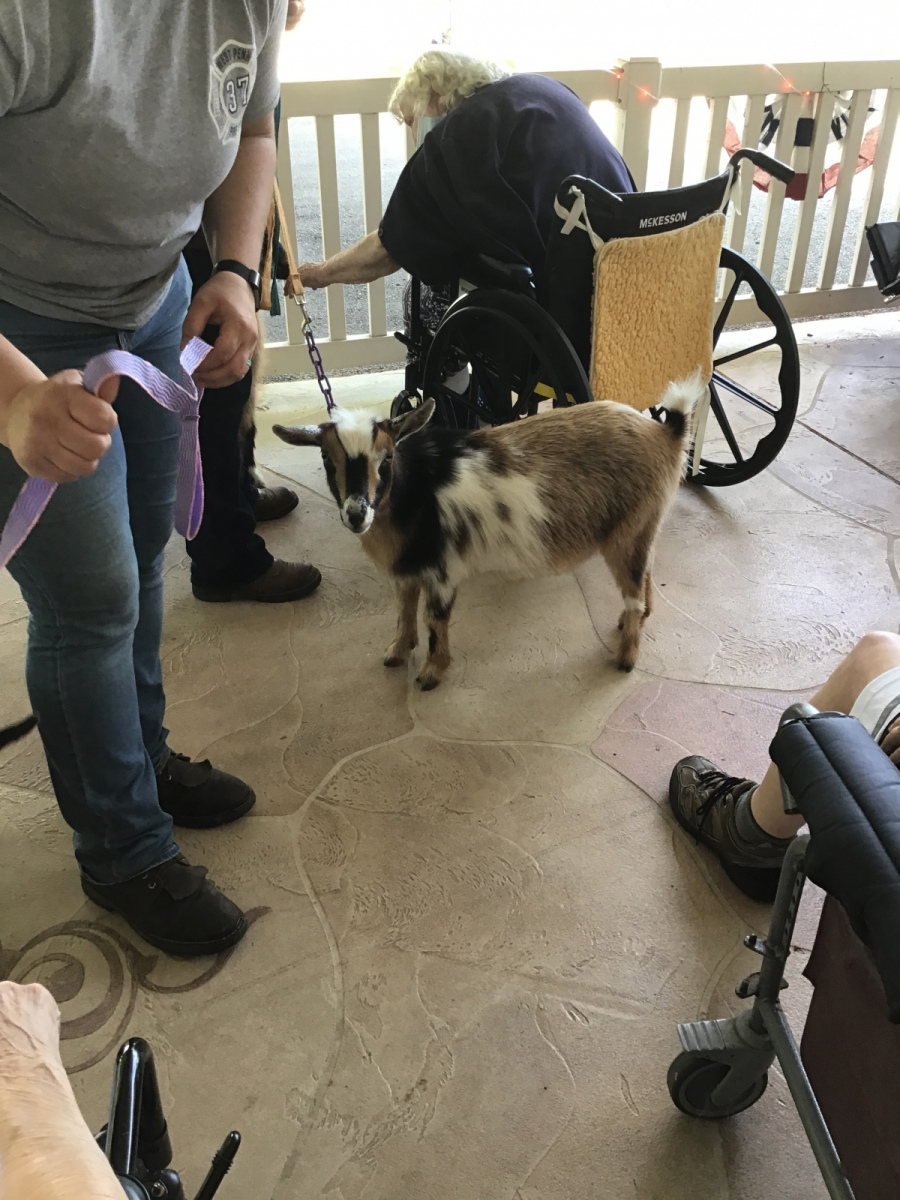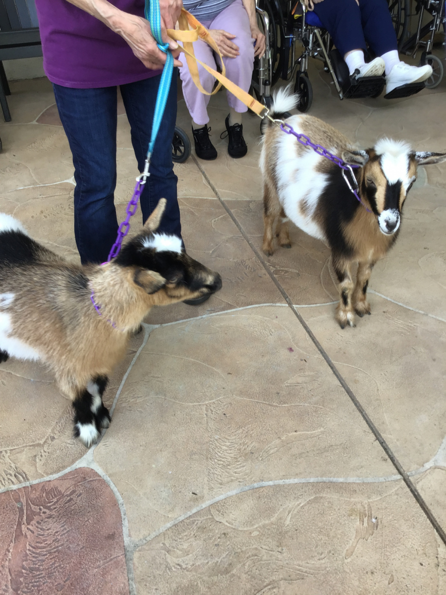 Today we enjoyed a special visit from three friendly goats. We had a wonderful time petting each one, getting to know their personalities, and simply enjoying their company. We look forward to the next visit!