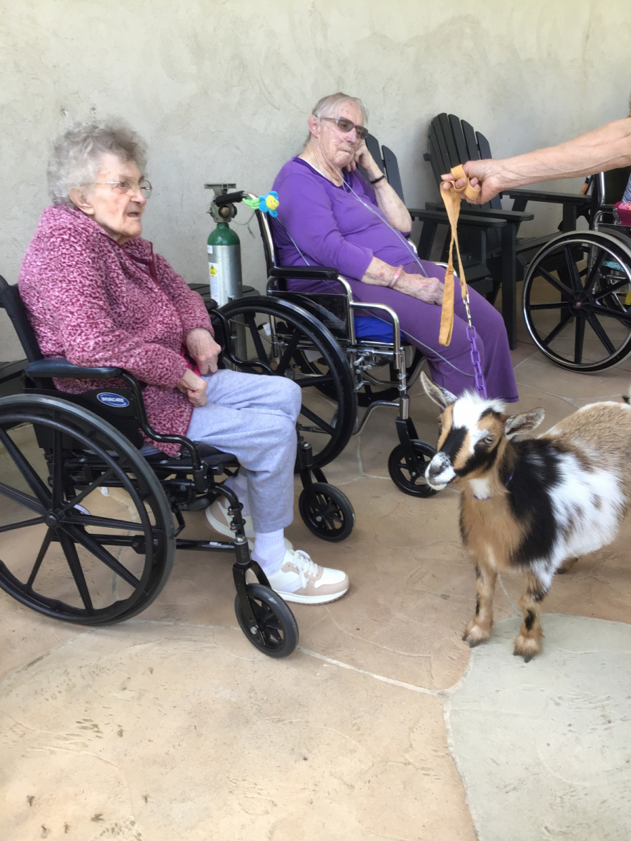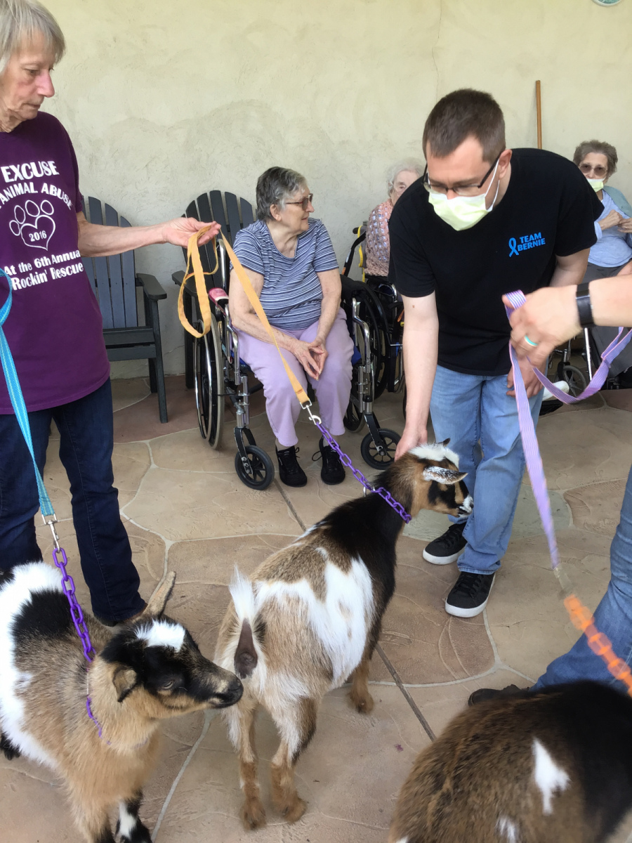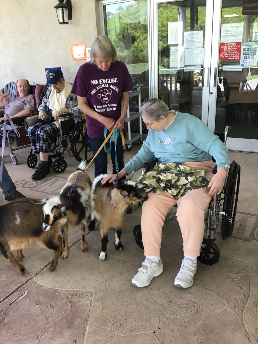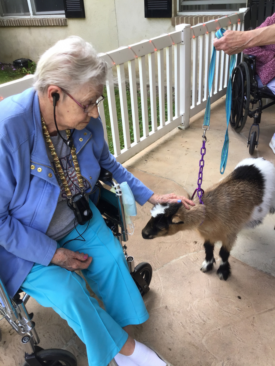 Today we enjoyed a special visit from three friendly goats. We had a wonderful time petting each one, getting to know their personalities, and simply enjoying their company. We look forward to the next visit!