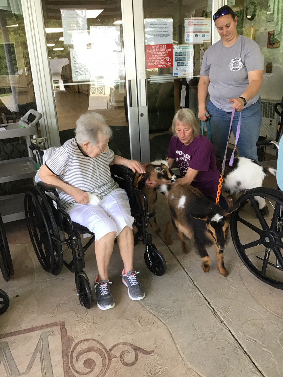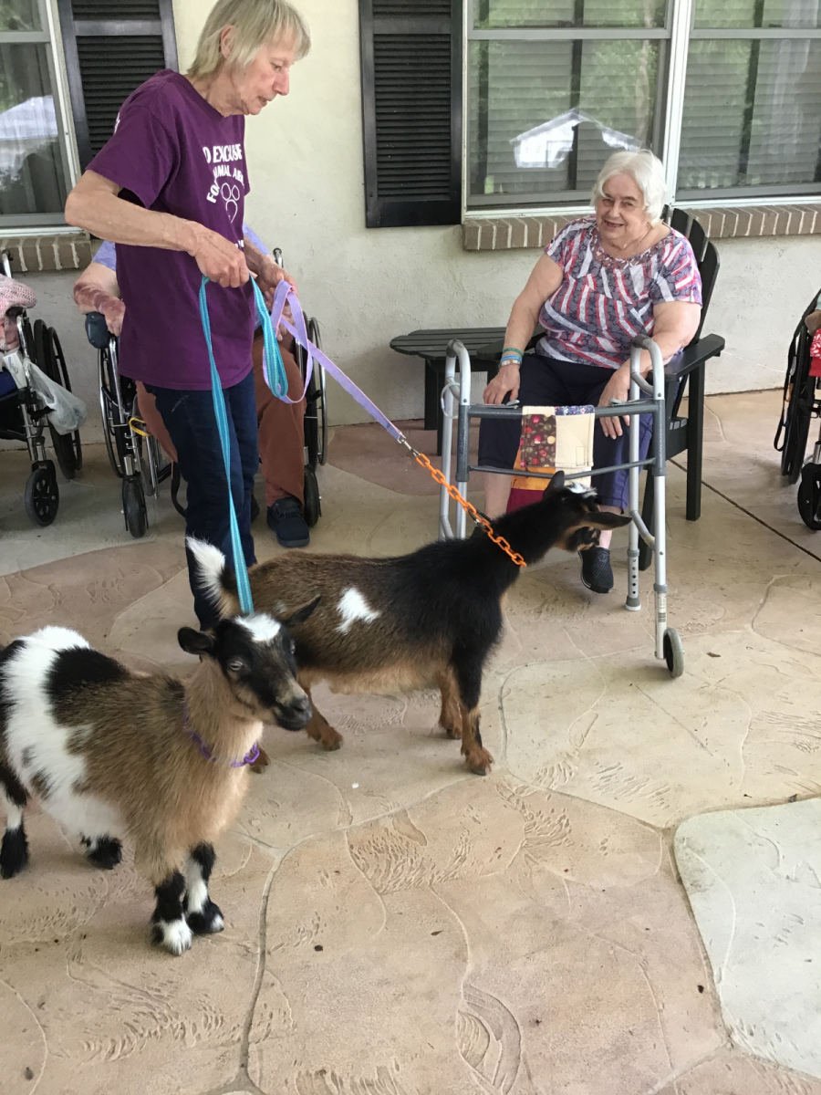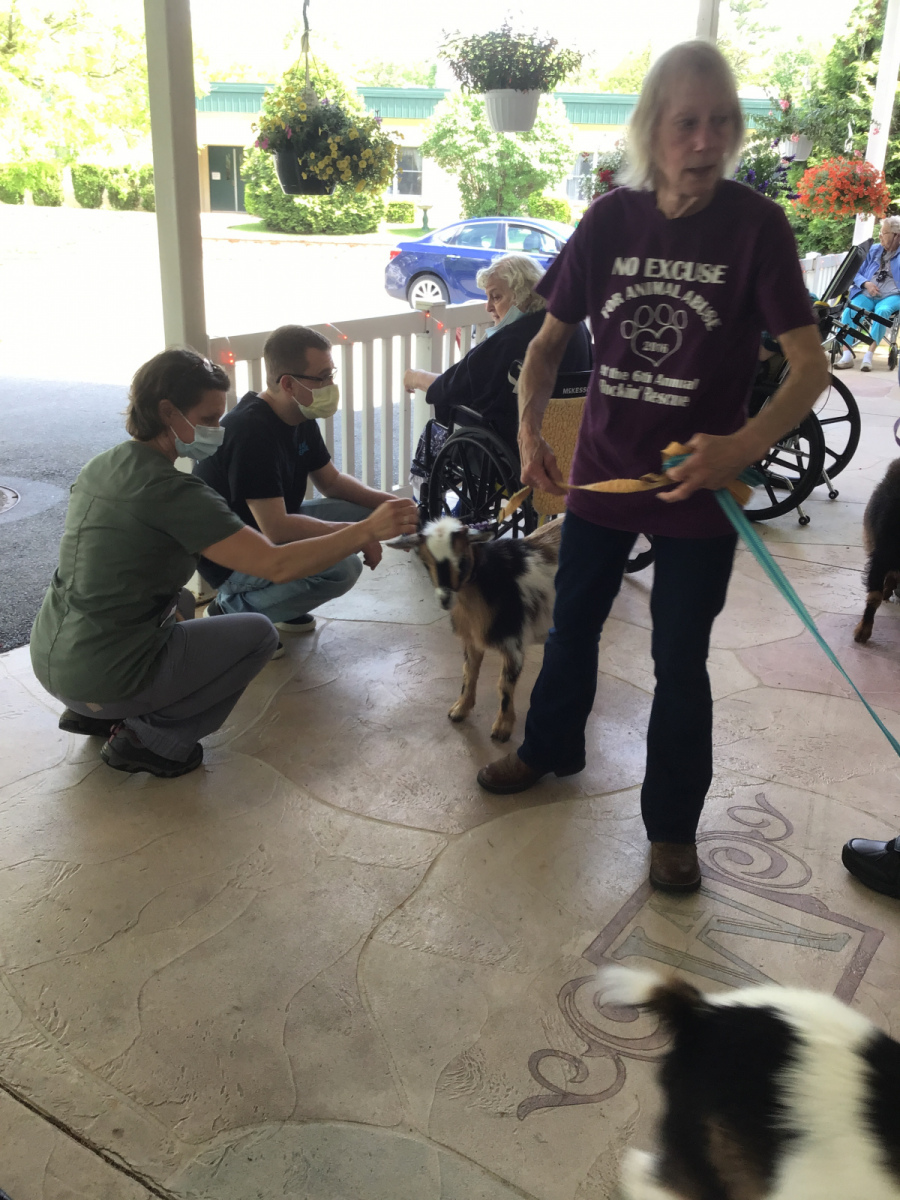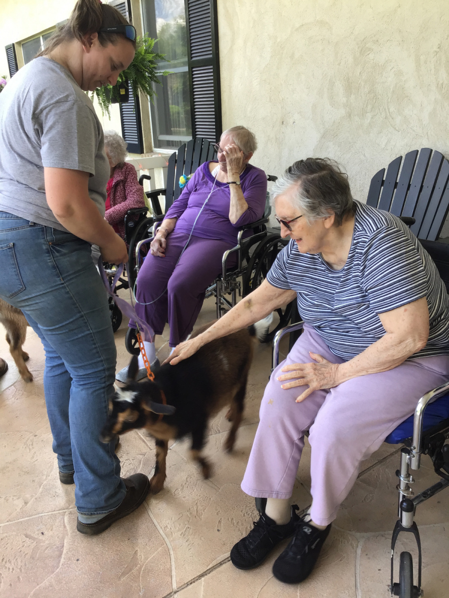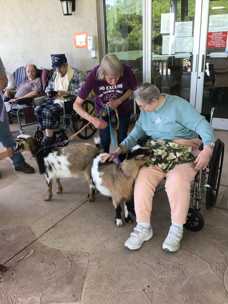 Today we enjoyed a special visit from three friendly goats. We had a wonderful time petting each one, getting to know their personalities, and simply enjoying their company. We look forward to the next visit!