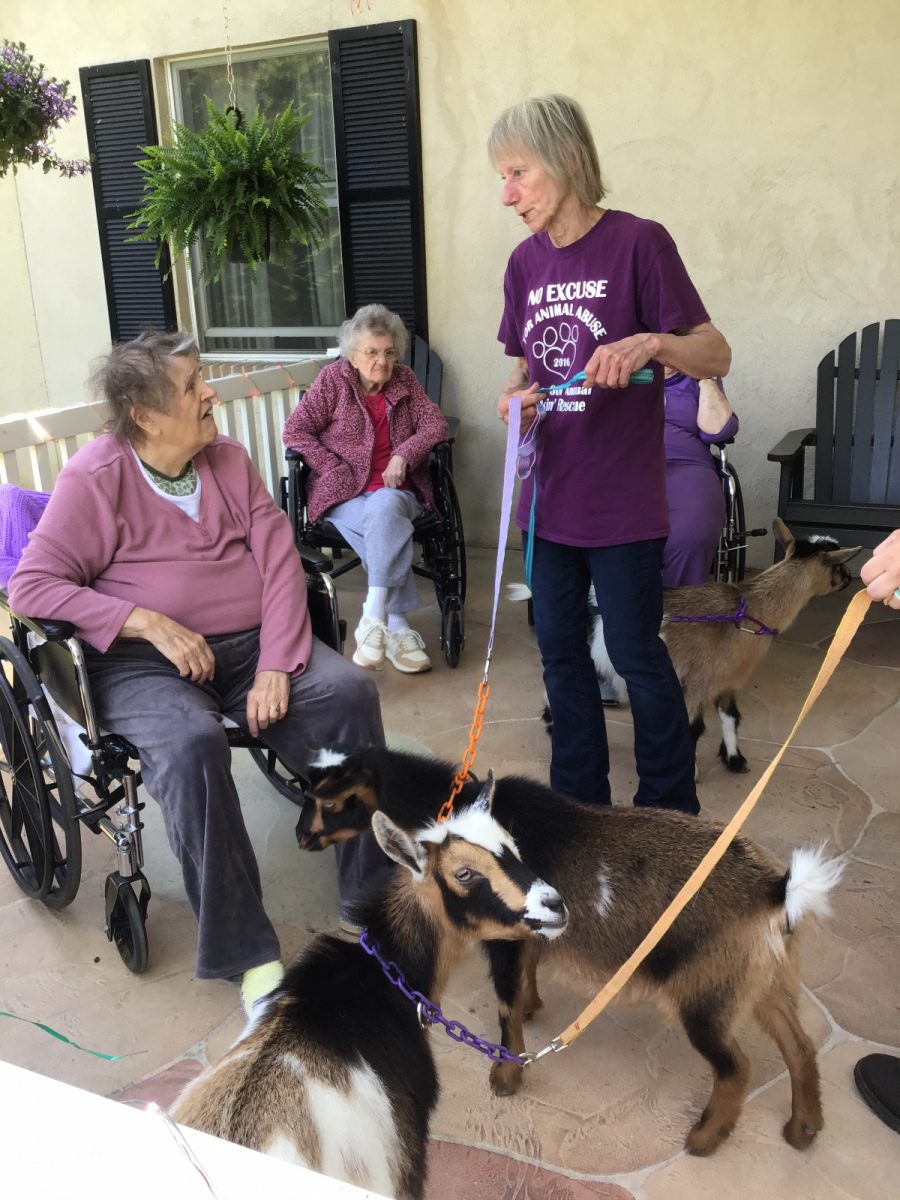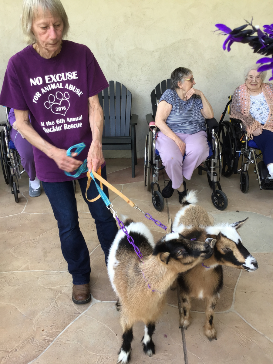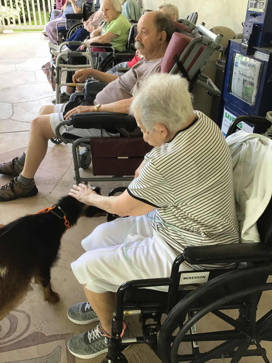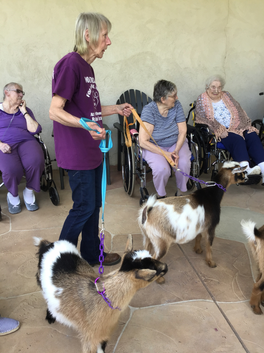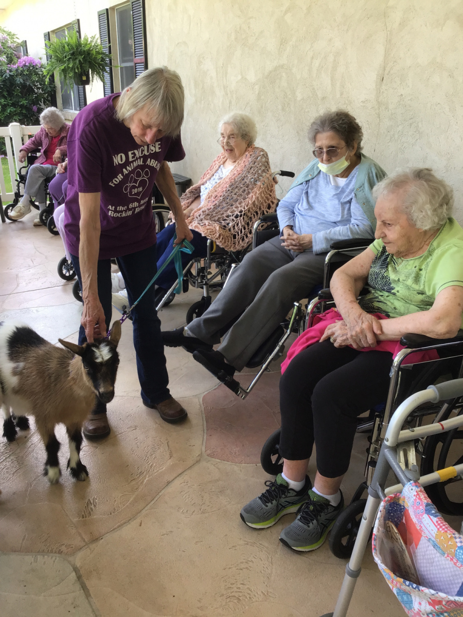Today we enjoyed a special visit from three friendly goats. We had a wonderful time petting each one, getting to know their personalities, and simply enjoying their company. We look forward to the next visit!