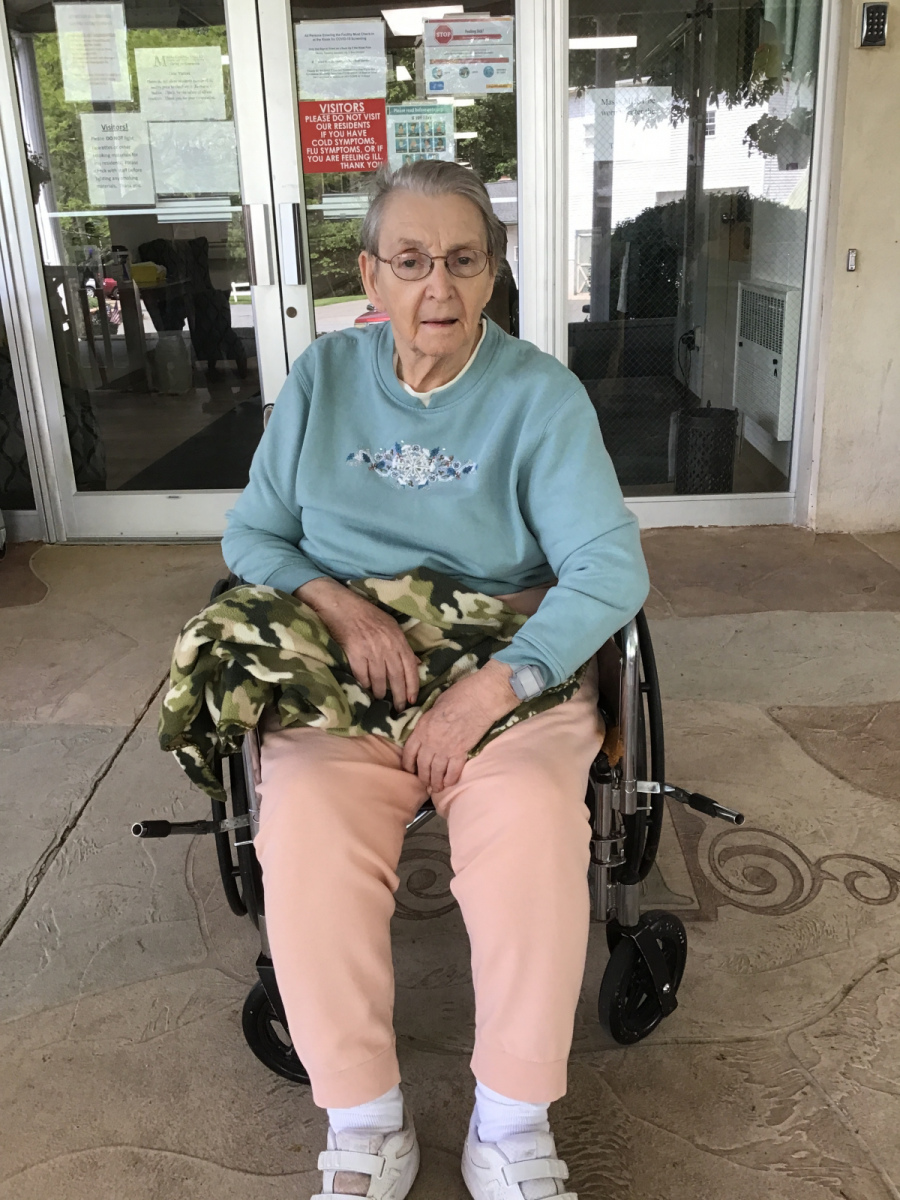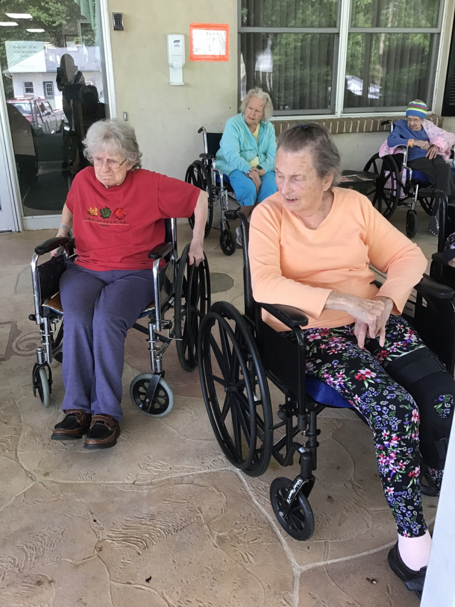 Snickers went through training to receive his K-9 Good Citizenship Certificate as well as being tested through the Alliance of therapy dogs and passed with flying colors. Most of the time, when Snickers is here you don’t even hear a beep out of him. Unless of course, his friend Vicki B from activities is near. They sometimes get into trouble together.